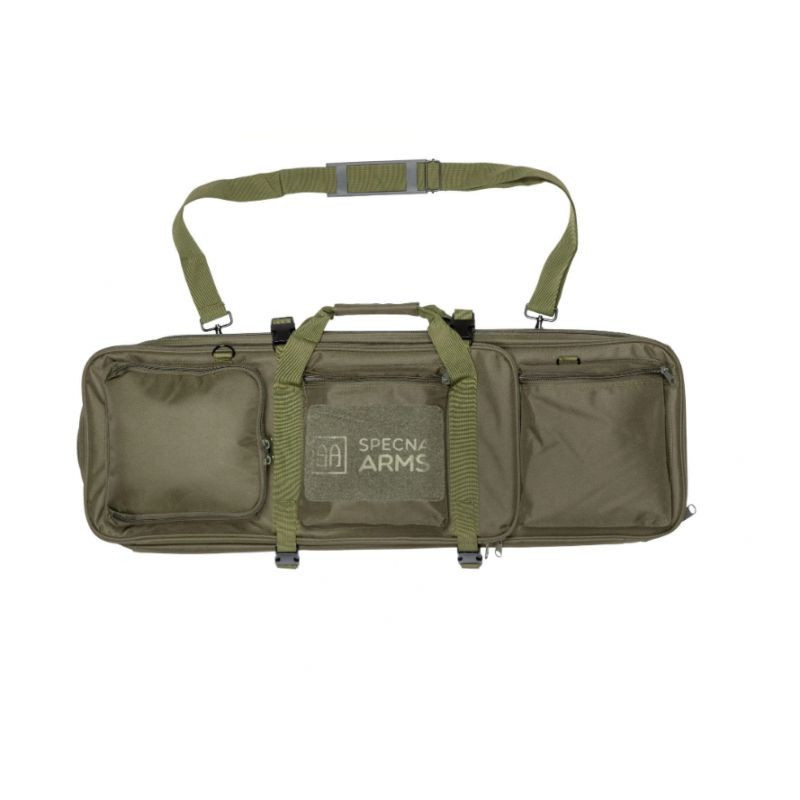Hoes voor Specna Arms-replica gemaakt van duurzaam nylon. De hoes kan 2 replica's bevatten: een machinepistool met een maximale lengte van 550 mm en een geweer met een maximale lengte van 810 mm, dat uitloopt tot 1150 mm met een extra huls. Met meerdere draaghandvatten en zachte schuimvulling maakt de Specna Arms Gun Bag het veilige en comfortabele transport van het replica/airsoftwapen mogelijk naar de schietbaan of in een voertuig.